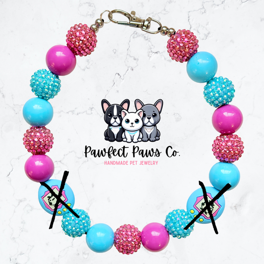 Pocket Pet* Pink & Blue Sparkle Tamagotchi Custom Beaded Dog/Cat Necklace!