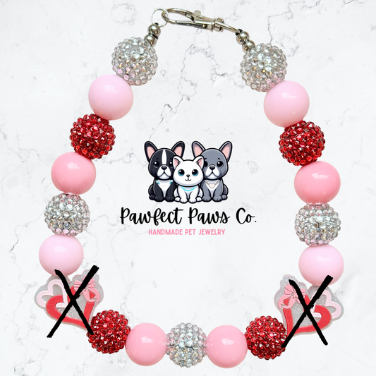 Heartstrings* Pink, Silver & Red Sparkle Heart Valentines Day Custom Beaded Dog/Cat Necklace!