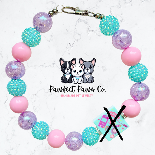 90’s Baby* Pink & Purple Sparkle Nostalgia Valentines Day Custom Beaded Dog/Cat Necklace!