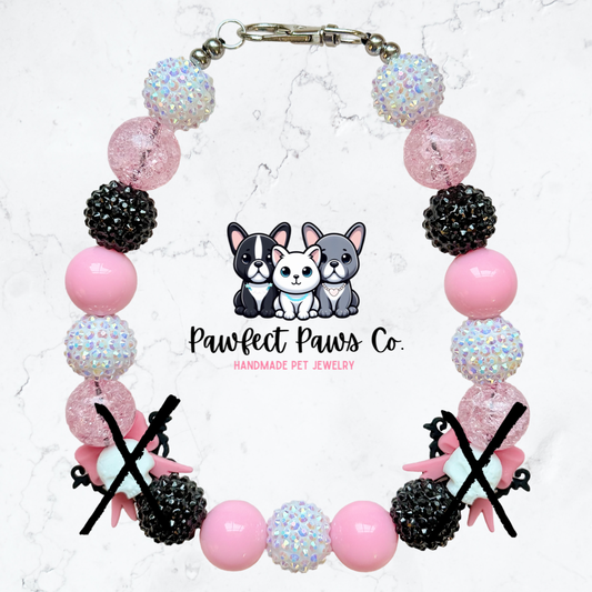 Eternal Love* Pink & Black Sparkle Skull Valentines Day Custom Beaded Dog/Cat Necklace!