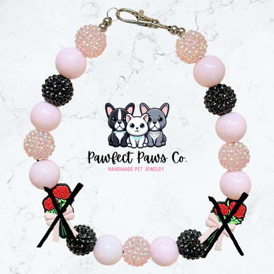Sweet Roses* Pink & Black Sparkle Valentines Day Custom Beaded Dog/Cat Necklace!